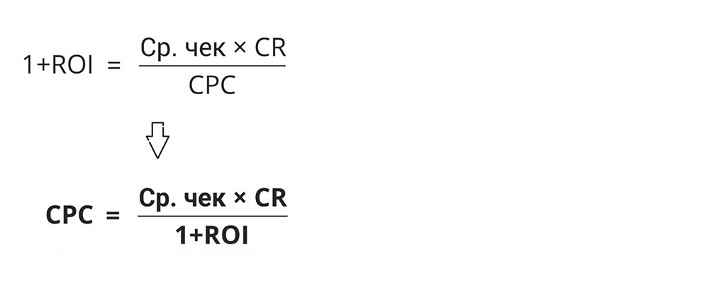 Также формулу для расчёта CPC по целевому ROI можно рассчитать иначе.